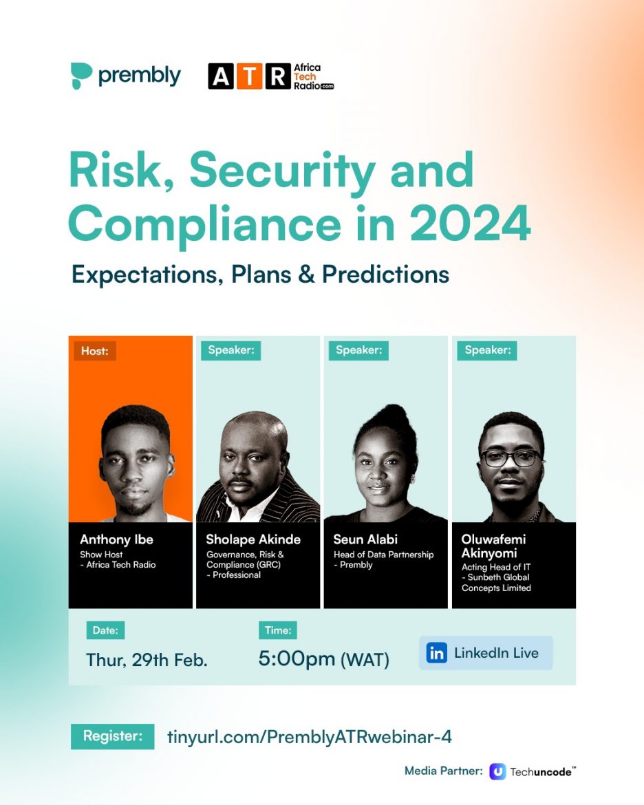 Expectations, Risks, and Predictions in 2024 for the Compliance and Security sectors, where do you place your bets? This is the inaugural episode of Prembly’s 2024 Webinar Series in partnership with Africa Tech Radio. In this episode, we delve into thought-provoking discussions on Risk, Security, and Compliance in 2024. Panelists […]